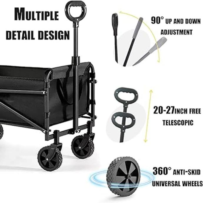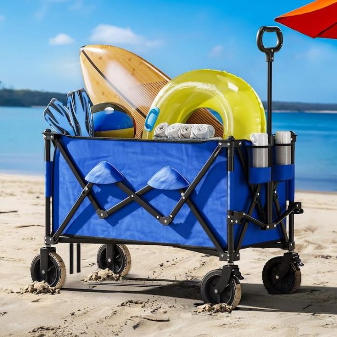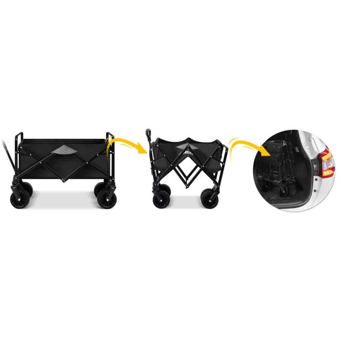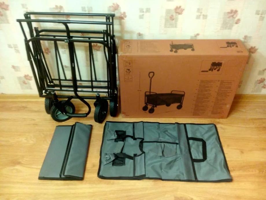 Savršen dodatak za sve vaše aktivnosti na otvorenom. Ova kolica, dimenzija ¨68 x 48 x 48 cm, omogućuju jednostavno prenošenje svih potrebnih stvari, bilo da se radi o opremi za plažu, vrtu, kampiranju, piknike, pecanje ili čak kao pomoć pri selidbi.