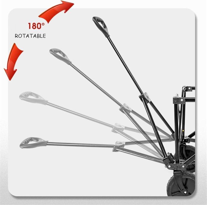 POJAČANA SKLOPIVA KONSTRUKCIJA – Kolica se lako sklapaju, što ih čini jednostavnim za transport.Unatoč što se mogu sklopiti, kolica imaju visoku nosivost, što omogućuje prijevoz teškog tereta bez opasnosti od oštećenja. Sklapanje okvira olakšava spremanje i transport, a kolica zauzimaju malo prostora kad su sklopljena, što ih čini idealnim za prevoz u prtljažniku automobila.