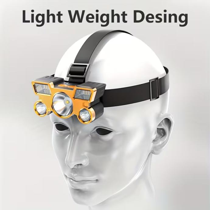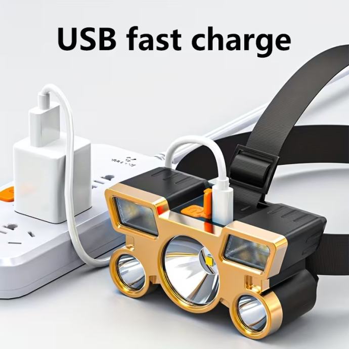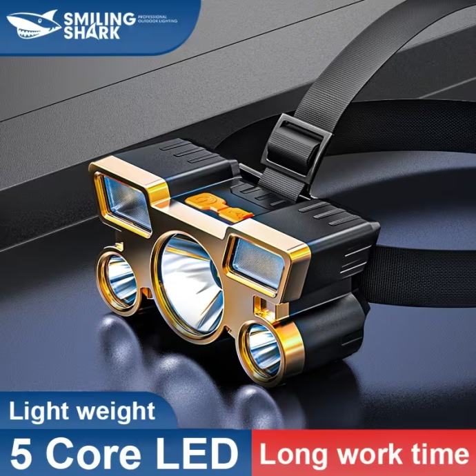 SMILING SHARK K71B Snažna naglavna svjetiljka s 5 super svijetlih LED svjetala, podesivim reflektorom pod kutom od 90°, 4 različita načina rada, punjiva putem USB-a, s opcijama bijelog i crvenog svjetla, idealna za aktivnosti na otvorenom poput kampiranja, planinarenja i trčanja.