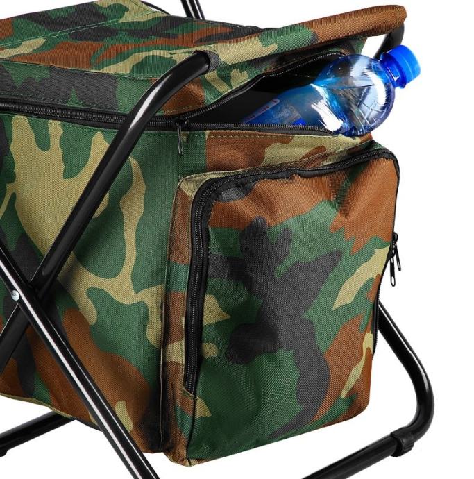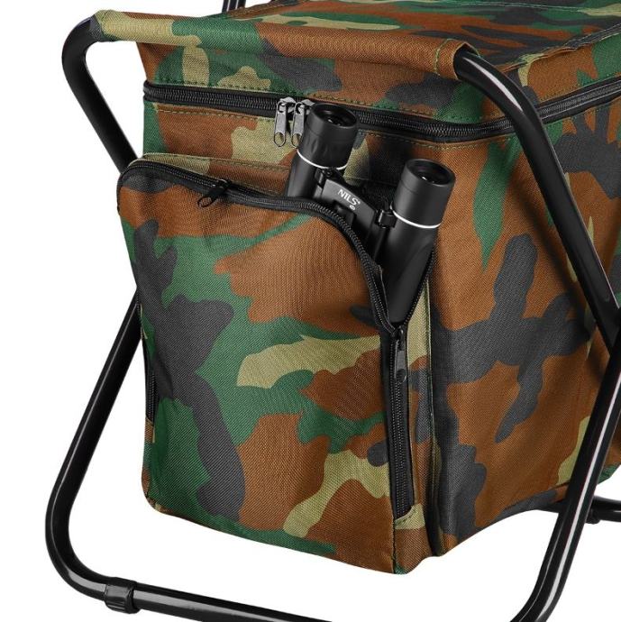Oxford materijal pruža visoku otpornost na habanje i oštećenja, dok duboko sjedalo s udobnim naslonom osigurava vrlo visoku udobnost sjedenja. Ispod stolice su 2 džepa. Prednji džep je lako dostupan za vaš telefon, sunčane naočale, dalekozor ili drugu ručnu opremu. Glavni džep je namijenjen za hranu i piće.Boja: vojnički uzorak - camoMaterijal: 600D oxford, čelikŠirina: 32 cmVisina: 65 cmDubina: 40 cmVisina do sjedala: 38 cmSklopljen: 54 x 32 x 3,5 cmOkvir: čelični profili promjera 16 mmTorbica: daDva donja džepa s zip zatvaračemNoge protiv klizanja: daMaksimalna težina korisnika: 100 kgTežina proizvoda: 1,5 kg