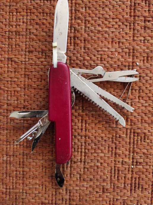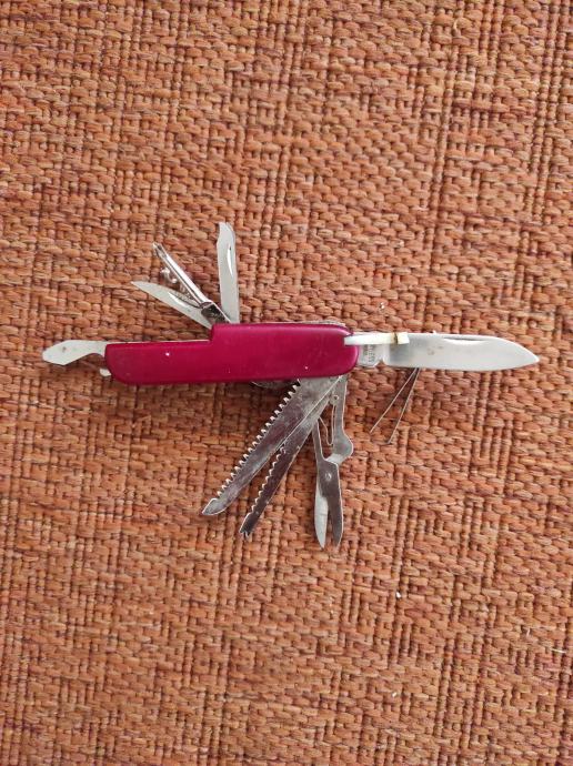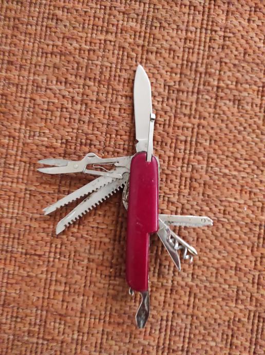 Original Swiss nozic za boravak u prirodi,ima od cackalice do princete,noz,skarice, turpijicu,šarafcigere,pile razne,otvarač za konzerve,vadi čep itd, sve od nehrđajućeg čelika,ugl sve sto treba covjek u prirodi,Vidi u slikama.Šaljem Poštom ili Tiskom ili u dogovoru sa kupcem za sve informacije nazovite na broj 097-6601365 ili pošaljite upit na Viber ili Njuskalo.. Stanje nozica je vrlo dobro. POGLEDAJ SLIKE!!