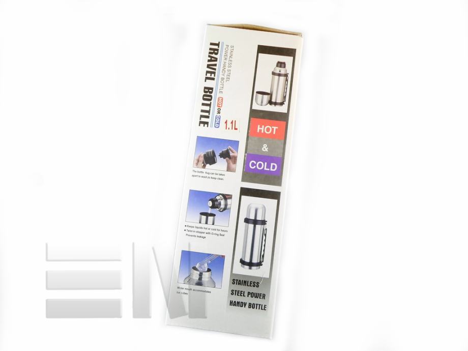 Sačuvajte temperaturu vaših napitaka hladnim ili toplim pouzdanom i čvrstom inox termosicom. Termos boca, inox termosica 1,1L od nehrđajućeg čelika s dvostrukom stijenkom koja osigurava dugotrajno održavanje temperature, unutarnja i vanjska strana od nehrđajućeg čelika, sa ručkom za nošenje i najlonskim remenom koji se može pričvrstiti na termosicu radi lakšeg transporta. Kapaciteta od 1,1L čini ovu termos bocu idealanu za aktivnosti na otvorenom. Praktičan sigurnosni zatvarač, s jednostavnim „PUSH“ sustavom može se otvarati i zatvarati jednom rukom. Poklopac na navoj se može koristiti kao šalica. Obavezna oprema svakog ljubitelja, kampiranja, planinarenja i općenito boravka u prirodi.