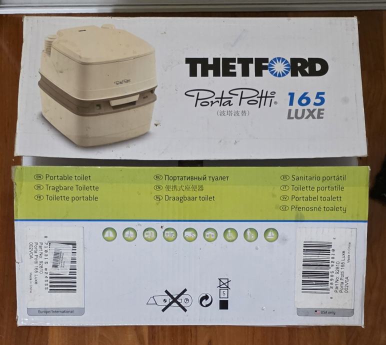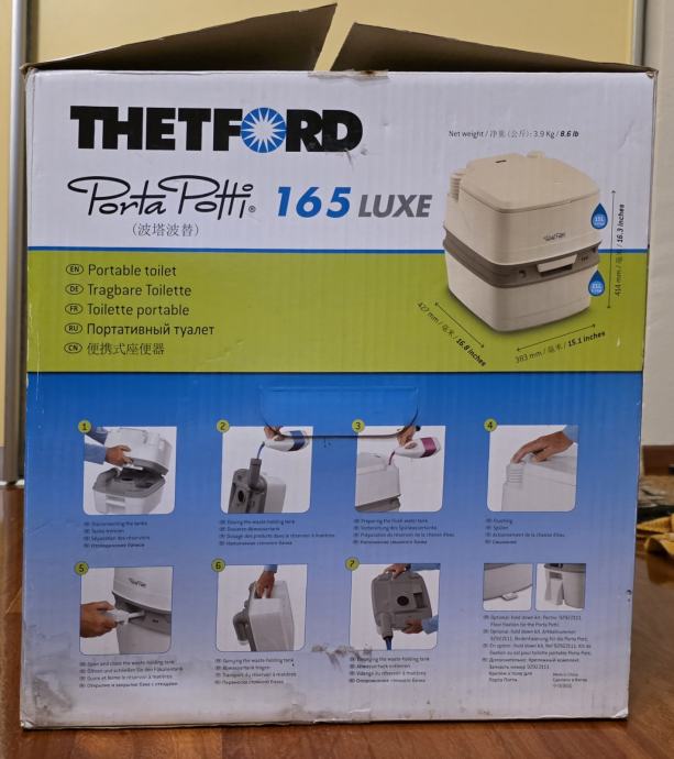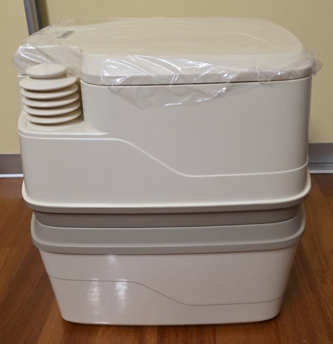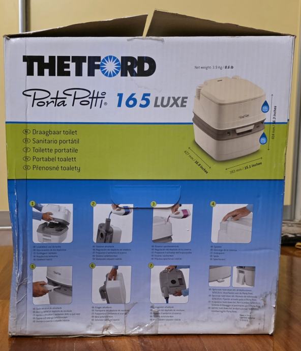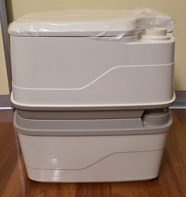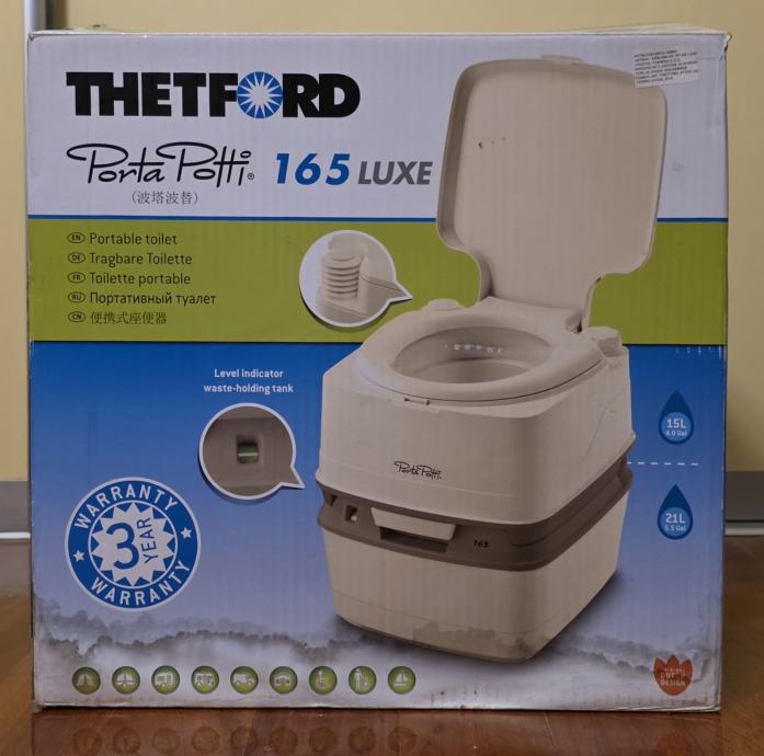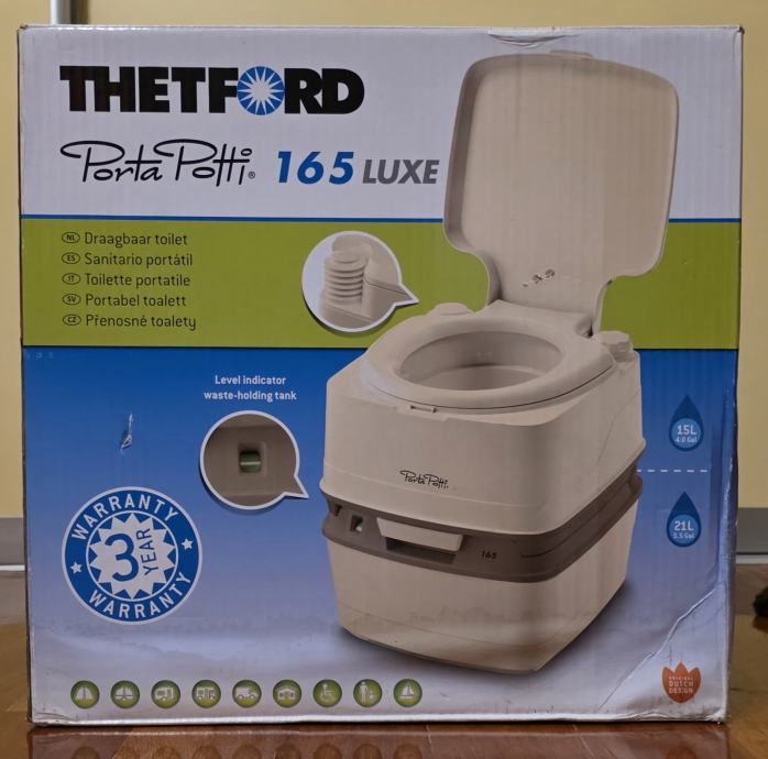 Prodajem rabljeni, minimalno korišteni, Thetford Porta Potti 165 luxe, savršen za kampiranje i outdoor aktivnosti. Prijenosni kemijski toalet je u skoro novom stanju i funkcionalan, idealan za kampere i izlete u prirodu. Korišten tjedan dana za vrijeme renovacije wc-a. Očišćen, opran, dezinficiran. Kao nov. Sve se vidi na slikama. Čep za vodu koji fali na slici je unutar wc-a, kako je i došao.