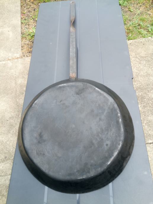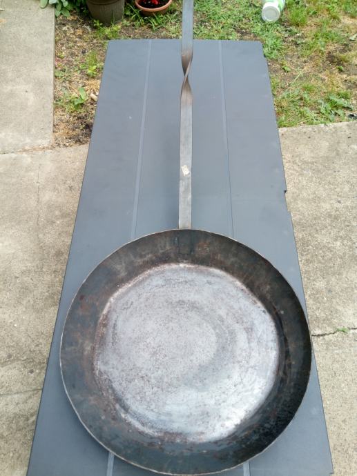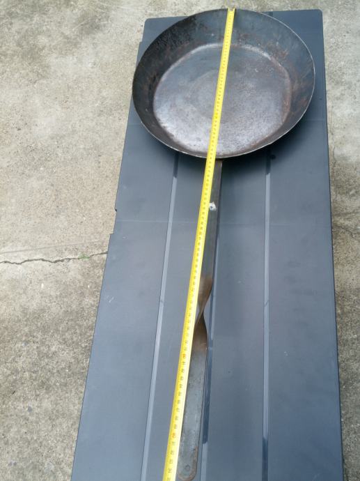 Grill tava korištena par puta na kampiranju promjer 44cm a ukupna dužina sa ručkom 95 cm