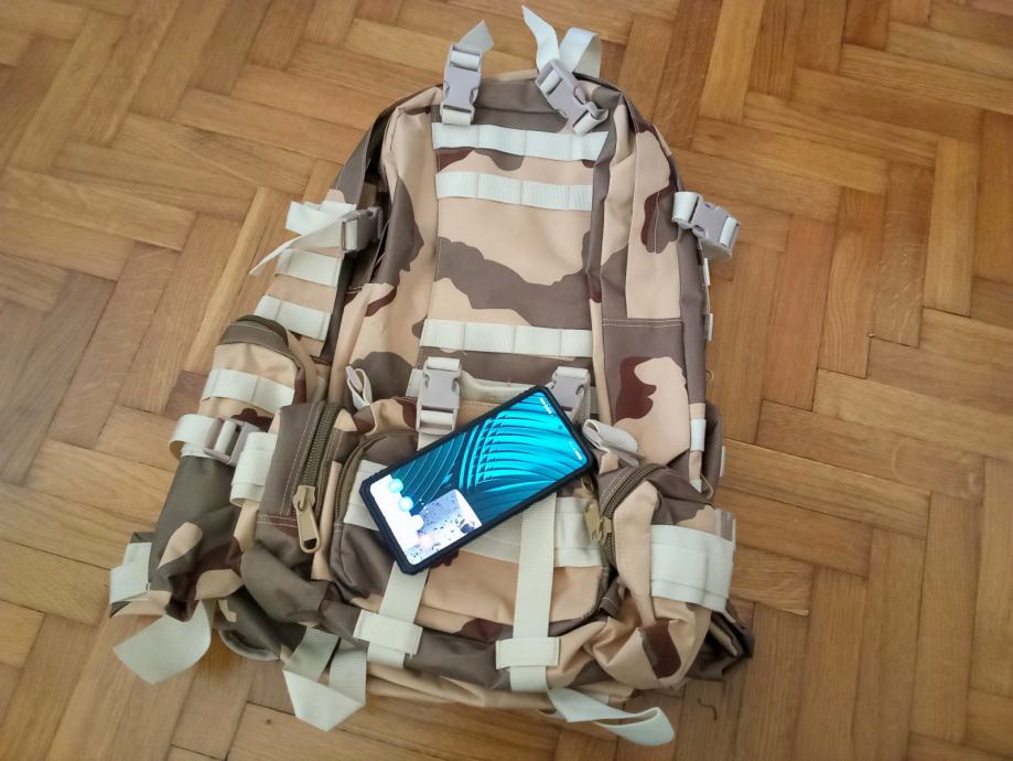 Na ruksaku je velika odvojiva torbica, može se nositi u ruci, oko pojasa ili na ramenu.