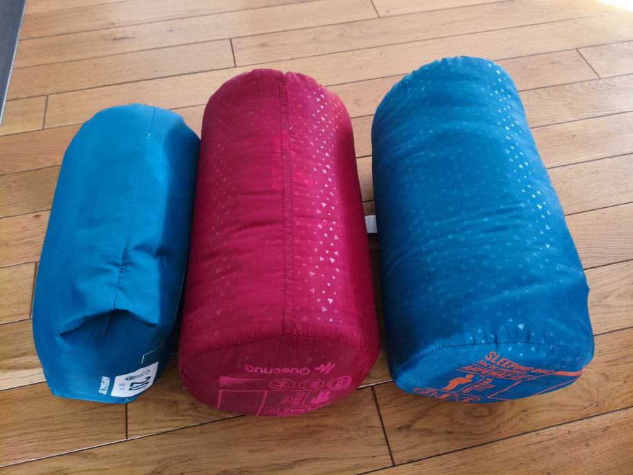 Prodajem rabljene vreće za spavanje Quechua Arpenaz 15°. Radi se o tri komada – dvije plave i jedna crvena/ružičasta. Sve tri su modela Arpenaz 15°, prikladne za temperature do 15°C, a maksimalna visina korisnika je 190 cm. Proizvedene su od strane branda Quechua i namijenjene su kampiranju i boravku na otvorenom.