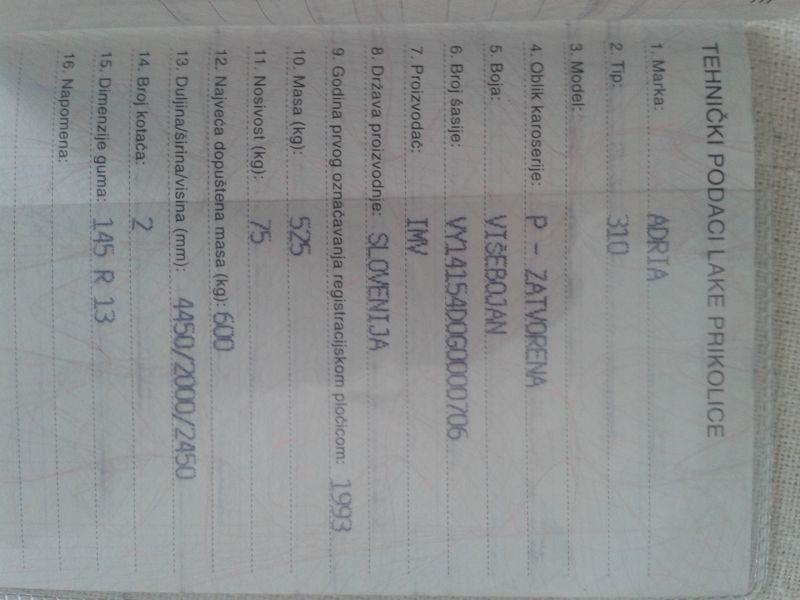 Prodajem kamp kučicu Adria 310 u odličnom stanju , obnovljen interijer 2+1 krevet . Kampica ima uredne papire i registrirana je do 30.09.2015. godine a registrira se svake 3 godine. Nigdje ne prokišnjava i potpuno je suha , prozori i vrata potpuno dihtuju. Ima i krovni prozor na otvaranje. Predšator je skoro nov ( u upotrebi tek nekoliko sezona po dva tjedna godišnjeg ). U cijenu dajem frižider "Vivax" od 50 litara koji stane i prevozi se u kamp kučici.Kampica se nalazi u Splitu.