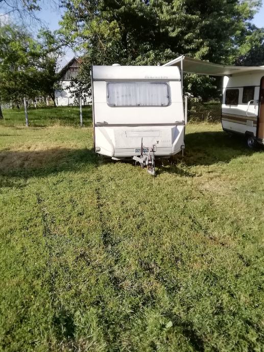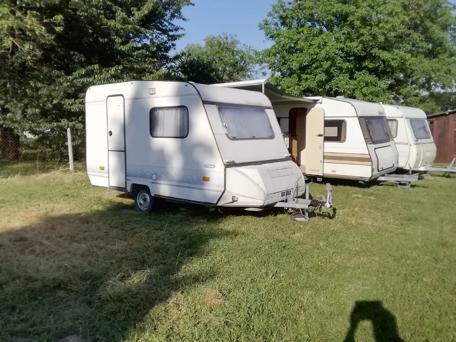 Kamp prikolica adria 350 u izvrsnom stanju kupljena od prvog vlasnika... Za dvoje odraslih i malo dijete... Kamperica ima wc ima klimu koja grije i hladi frizider nema kuhinjski element..svaki prozor ima mrezicu za komarce.... Ima pred sator.... Slobodno zovite do 22 sata nejdem rano spavati danas registrirana 11.8. 2021 rega tri godine