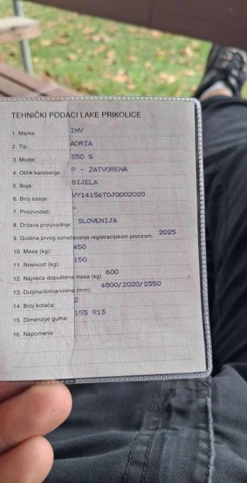 Prodajem kamp prikolica registrirana kao laka prikolica na 750kg, moze se voziti samo s B kategorijom.