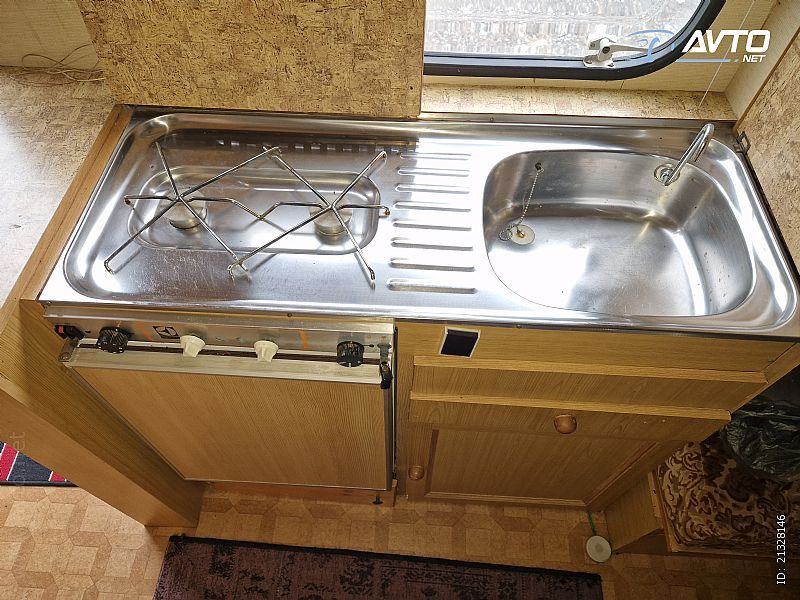 KUHINJA: 2 X PLIN, POMIVALNO KORITO, KOMBINIRAN HLADILNIK 12V/220V/PLIN