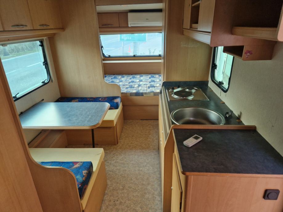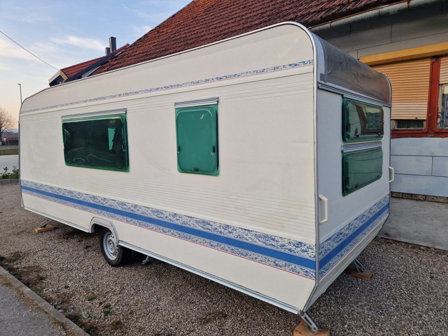 Prodaje se kamp prikolica za 6 osoba sa krevetima na kat .Nije za registraciju.