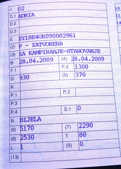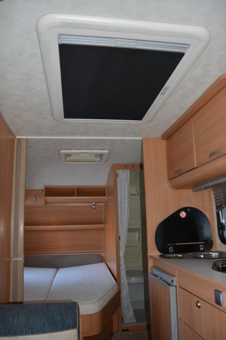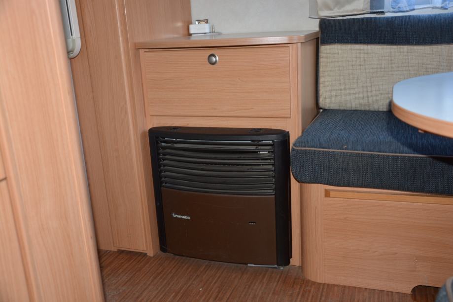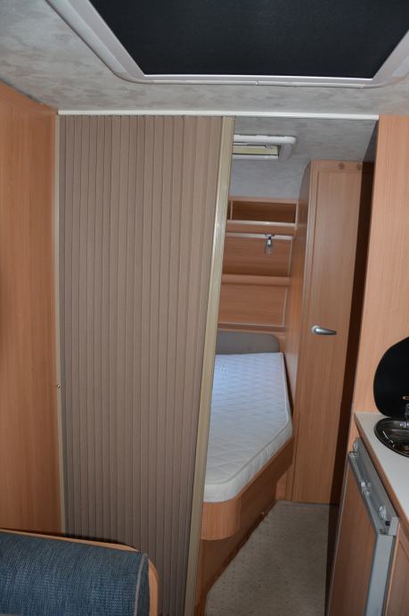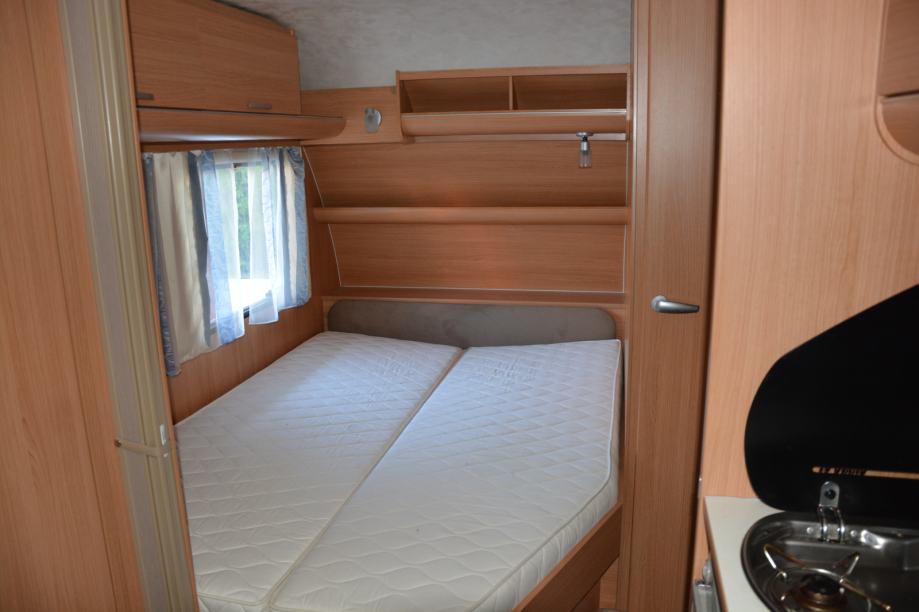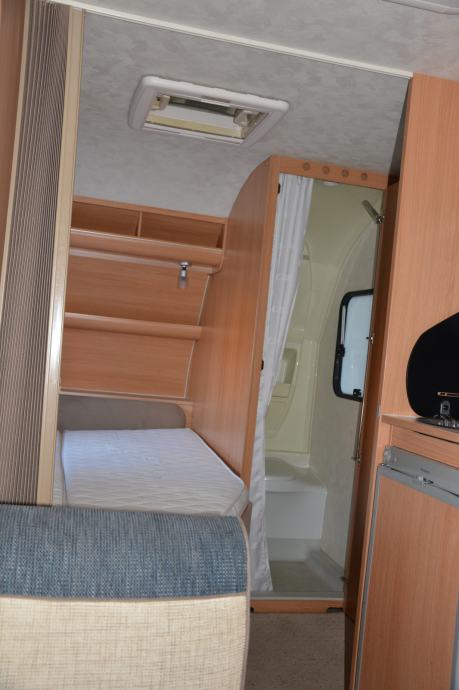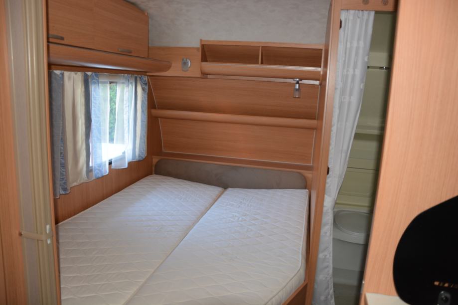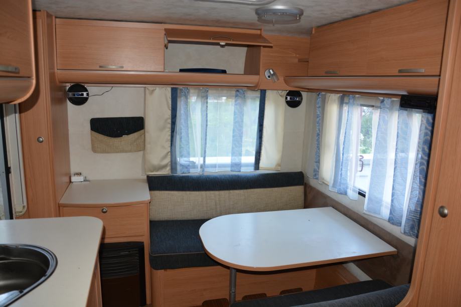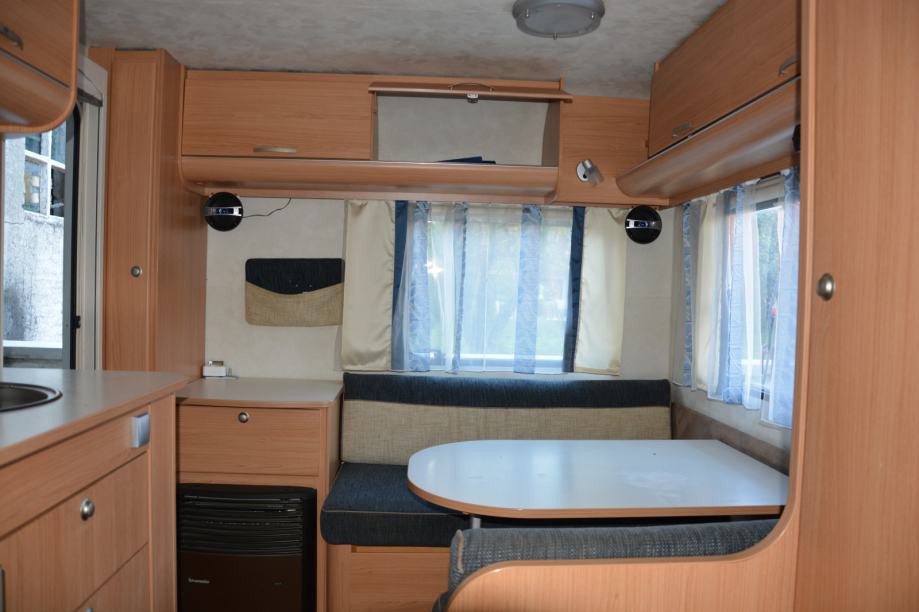 Prikolica je u dobrom stanju, ima dva ležaja u kojima mogu spavati 5 osoba. Spavača soba može se odjeliti pomičnom stijenom. Toalet i tuš su u posebnoj prostoriji a umivaonik i velika ogledala u spavaćoj sobi. Kuhinja ima dva plinska kuhala i sudoper sa slavinom i hladnjak koji radi na 12 ili 220 V ili na plin. Rezervoar za čistu vodu, električni bojler za pranje i tuširanje. Kemijski toalet sa spremnikom čiste vode. Peć za grijanje na plin, ili za ventilaciju. Prikolica je preko godine spremljena ispod nadstrešnice. Posljednjih godina nije korištena a od 2024. godine je odjavljena. Prvi vlasnik, papiri su uredni i ponovna registracija ja moguća bez problema