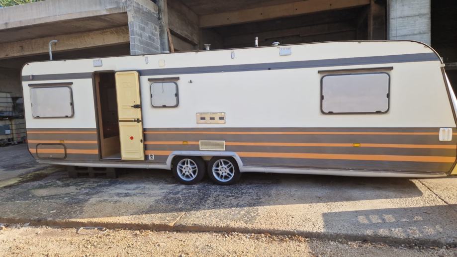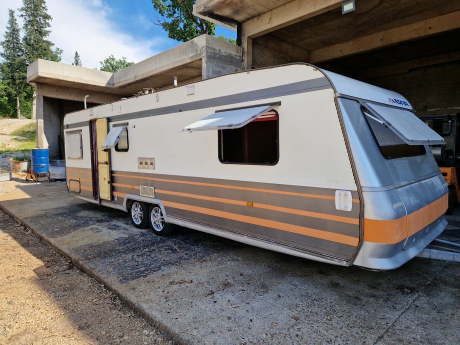 Prodaje se kamp kućica marke Adria duga 9 metara. U solidnom stanju, uredno registrirana i skroz funkcionalna. Unutra se nalazi kuhinja,wc, krevet na kat, bračni krevet, te još dva posebna kreveta koji se mogu pretvoriti u bračni. Uz kamp prikolicu dolazi i vanjska tenda(predvorje) dužine 9 metara širine 2,5m. Potrebno čišćenje radi ne korištenja 3 godine. Najduža kamp prikolica na oglasu. Idealna za veće obitelji. Kamp prikolica se nalazi u Vrgorcu. Nazvati na broj 0993628350 Ante.
