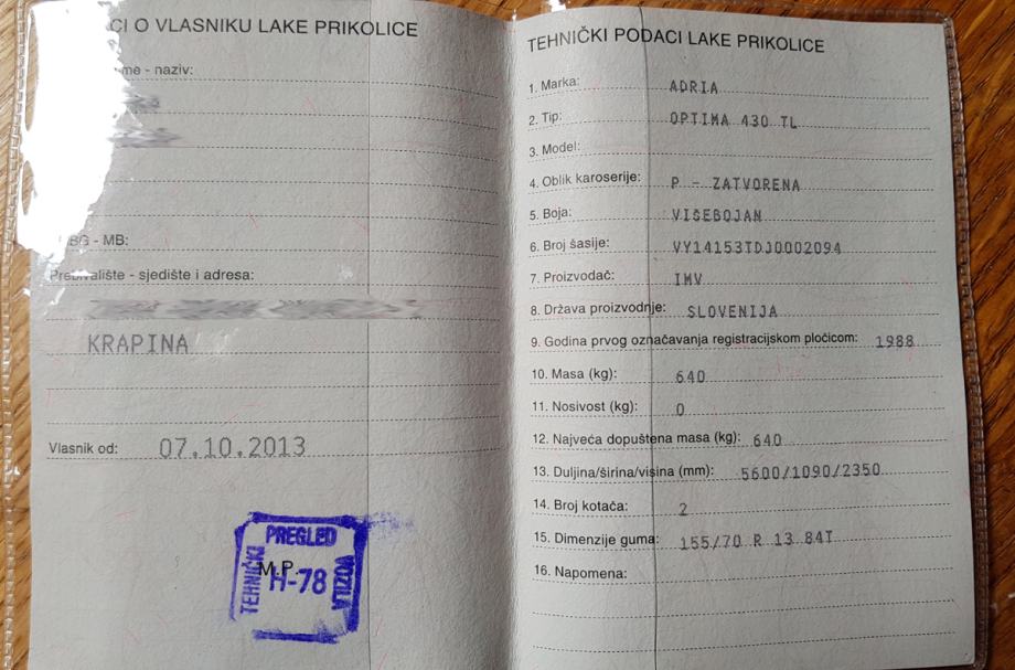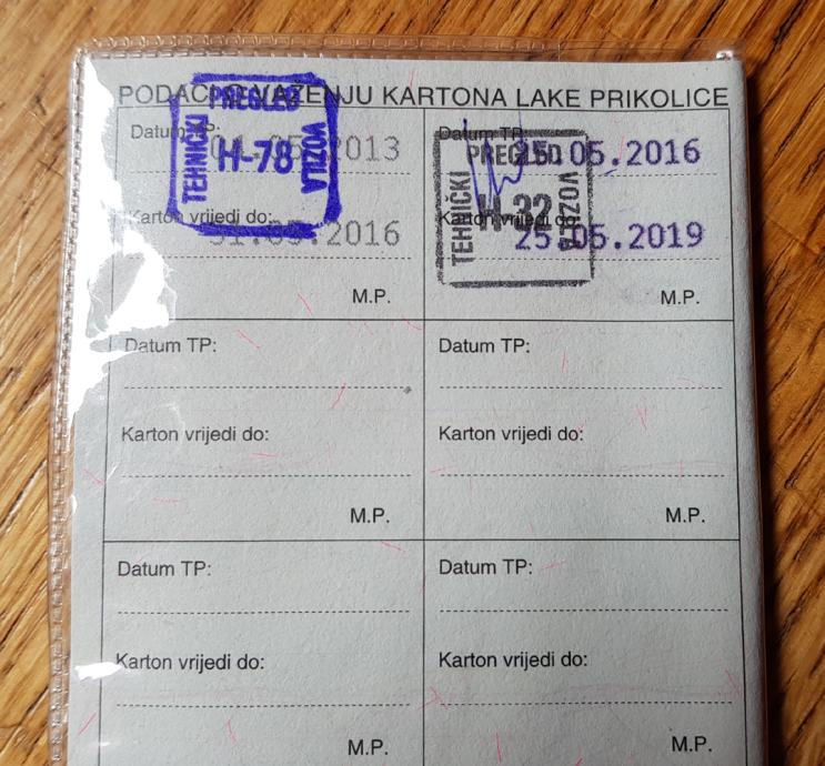 Registrirana do 5. mjeseca 2019. (registrira se kao laka prikolica, svake 3 godine).