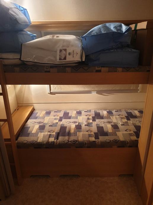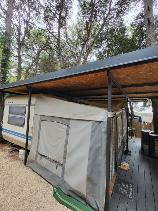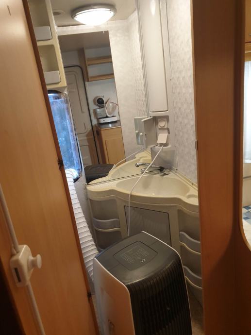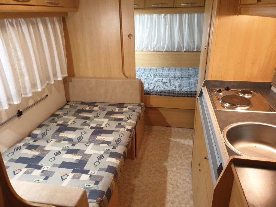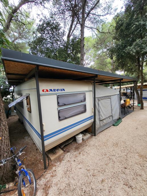 Prodaje se prikolica ADRIA PK 542, godište 2003. Duljina prikolice sa rudom je 740 cm, širina 220 cm i pogodna je za boravak 5 do 6 osoba (bračni krevet 200 X 140 cm, uzdužni krevet 190 X 100 - rastezljiv na 120 cm i krevet na kat 200 x 80 cm). Na svim prozorima su rolete i mreže protiv komaraca. U prikolici se nikada nije kuhalo, savršeno je očuvana - suha (bez vlage) i neoštećena. Prikolici pripada i baldahin godište 2018 te prijenosna klima. Prikolica se nalazi u Biogradu.