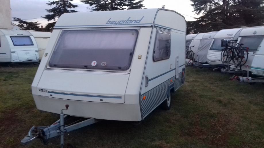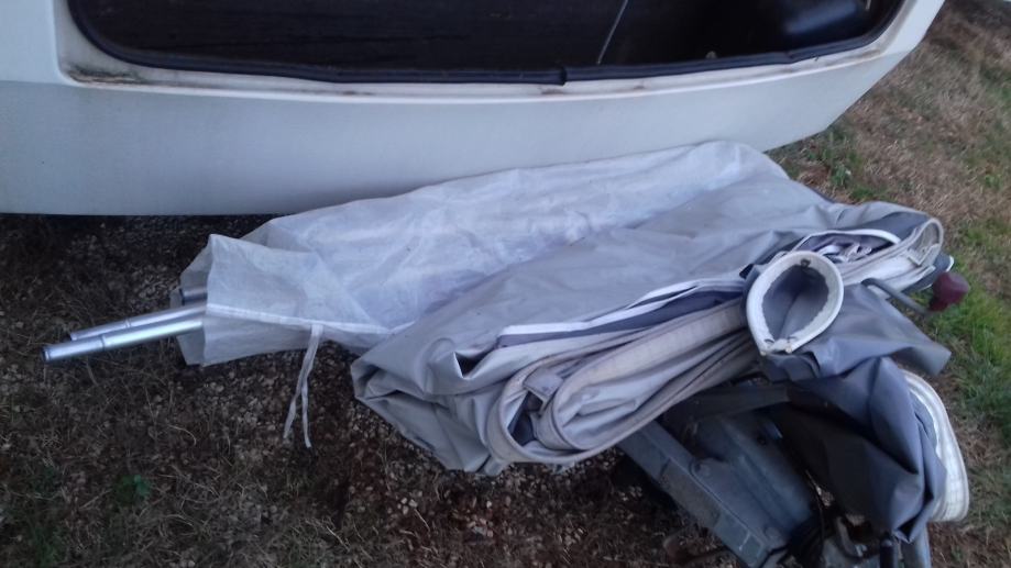 Dobro očuvana kamp prikolica za 2-3 osobe. Ima predšator sa otvorenom prednjom stranom.