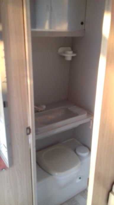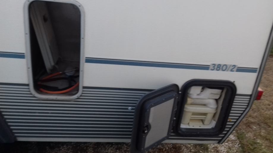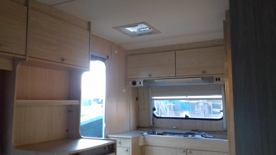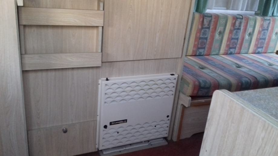 Od ostale opreme ima sudoper, plinsko kuhalo, frižider konbinirani struja-plin, plinsko grijanje, wc sa kazetnim pražnjenjem izvana, sve ispravno.