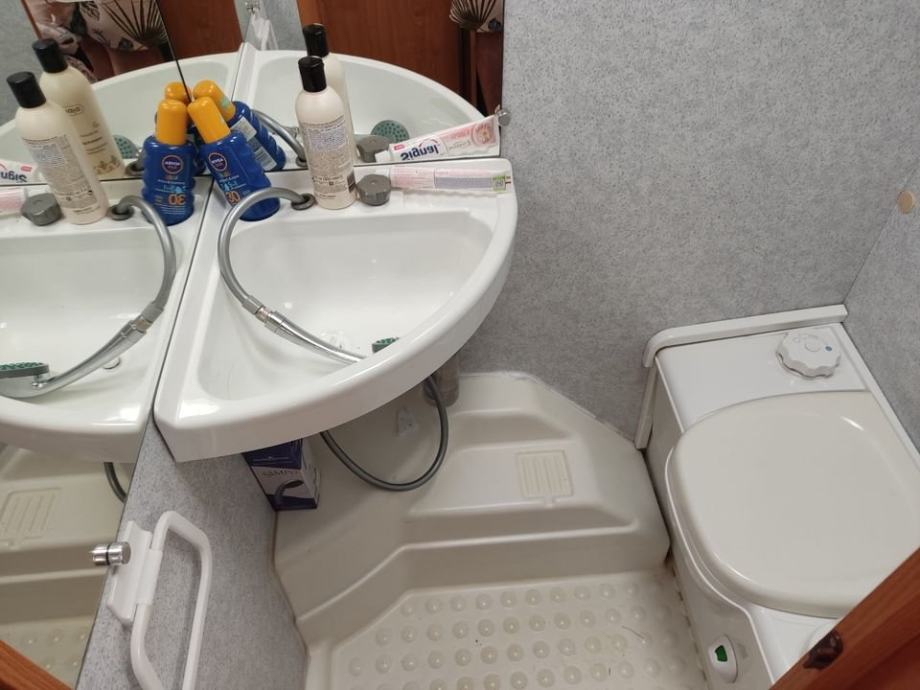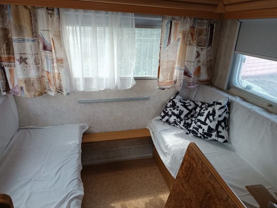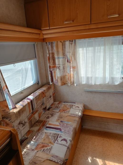 Unutra se nalaze dva kreveta za tri osobe. Uz to postoji kupaona s tušem, umivaonikom i kemijskim WC-om. WC se prazni izvana, pomoću kazete od 20 litara. Ima i vlastiti spremnik vode za ispiranje WC-a.