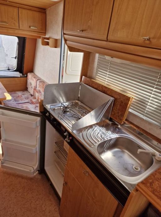 Kuhinja ima plinski štednjak, koji nije korišten, sudoper i Electrolux frižider koji radi na 12V, 220V i plin.