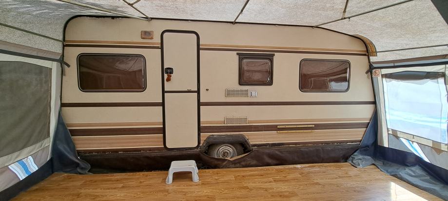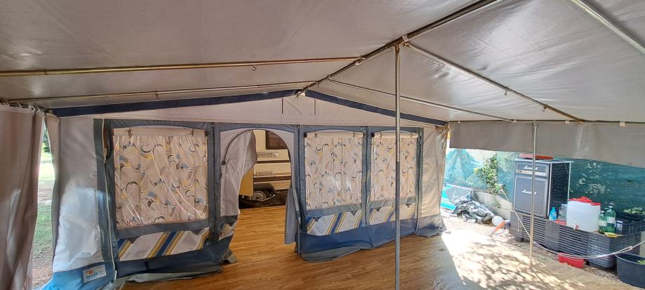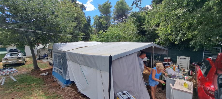 Uz kampicu dolazi puno dodatne opreme koja se vidi na fotografijama i videu. Predšator(2500cm.) i tenda(3000cm.) stari tri godine, očuvano kao novo, klima 2500w. stara tri godine, stolovi, stolice, dva frižidera, ležaljke, madraci. Ima osigurano mjesto, za paušal na 5mj. 25.04. – 12.10.2025. za 3.241,00eur.