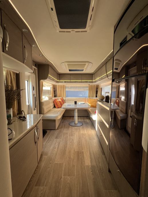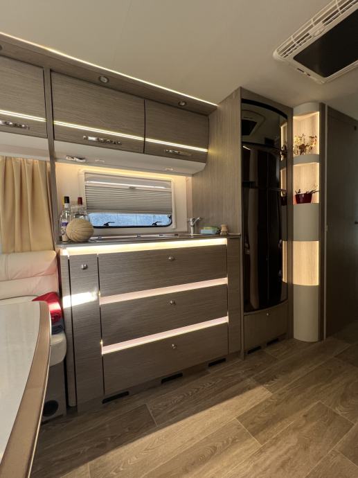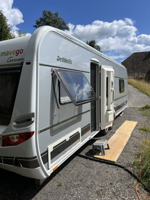 Prodajem kamp prikolicu Dethleffs 760 DR u vrlo dobrom stanju. Rjetko korištena i dobro zaštićena. Godina proizvodnje lipanj 2017. Stoji u Austriji blizina Klagenfurta.Posjeta i razgledanje moguće u svako vrijeme. K.prikolica korištena 2-3 puta u godini na 10 dana. Od zagreba samo nepunih 2,3 sata voznje do mjesta stajanja prikolice. Ukupna duzina prikolice 942 cm,netto 805cm, visina 265cm i širina 250cm. Pojačana vanjska-zimska izolacija (snow).Podno grijanje. Poseban tuš. Poseban toilet.Klima. Tezina prikolice 1960 kg. Ukupna nosivost 2200kg.Nosivost 240 kg.
