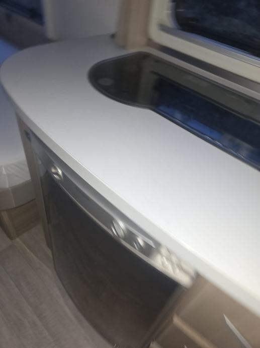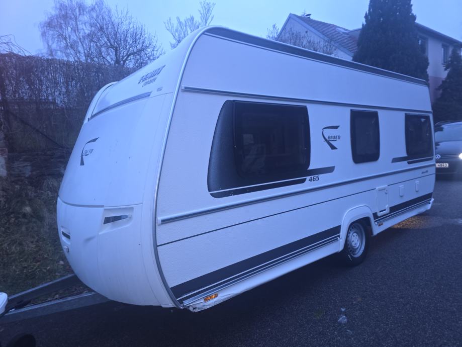 Ocijenio bih cjelokupno stanje s 3-/: čista unutrašnjost, bez mirisa ili vlage. Raspored spavanja: 2 fiksna odvojena kreveta + blagovaonica koja se može pretvoriti u bračni krevet. Kuhinja: Opremljena plinskom pločom za kuhanje, hladnjakom s 3 sklopiva vrata (ne radi) i sudoperom. Značajke: grijanje, stabilizatori i AL-KO spojnica. Tehničke specifikacije: Dimenzije: 2,40 m x 6,50 m. Struja: Unutarnje utičnice. Ova karavan prikolica je svijetla, prostrana i jednostavna za vuču.