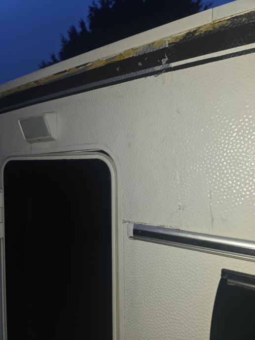 Karavan je u dobrom stanju iznutra i vodonepropusn, ali izvana ima nekih nedostataka. Desnu stranu je zakrpao prethodni vlasnik. Krovna obloga nije originalna i ne zatvara se pravilno duž cijele strane. U gornjem kutu okvira vrata postoji otvor, a bočna obloga ima šav na vrhu. Kosine krova su prebojane. Silikonsko brtvilo je već naneseno iznutra.