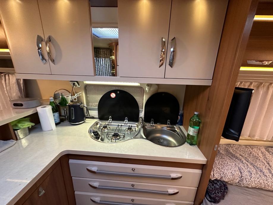 - je luksuzno opremljena hladnjakom sa zamrzivačem, WC-om s tušem, grijanjem, klimom, TV-om, LED rasvjetom, dvije plinske boce i električnim pogonom na daljinsko upravljanje.