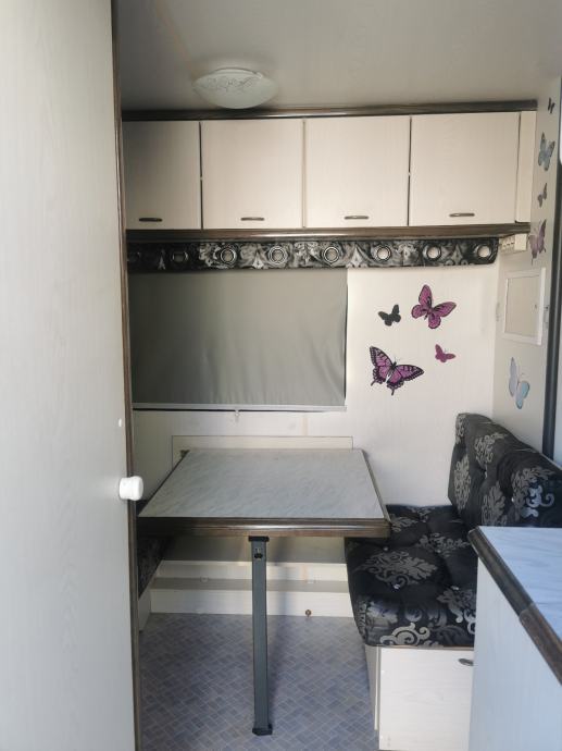 Prikolica posjeduje solarno napjanje s pretvaračem na 220V, Sve sto je na prikolici radi i ispravno je. WC, umivaonik, ormar , dosta pregrada , frižider plin, akumulator, struja, Zastičen pod s gumenom zaštitom.