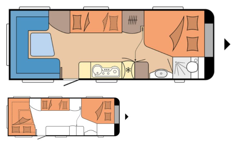 - Krevet za dvije odrasle osobe u prednjem dijelu sa kvalitetnim madracem na oprugama (podignut, donja ladica)