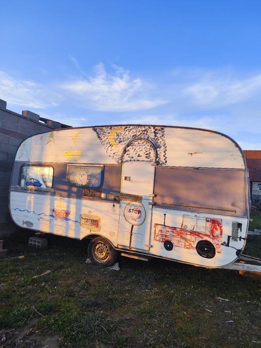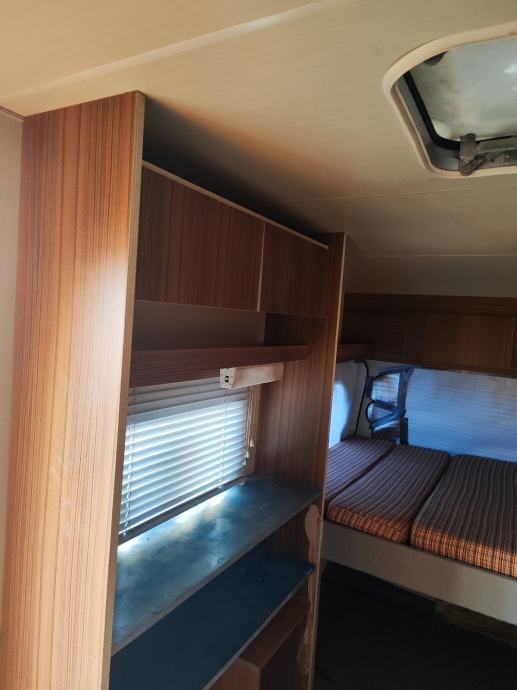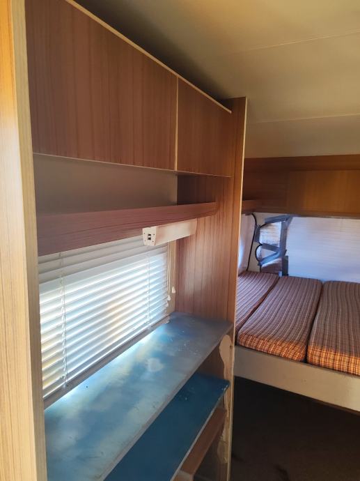 Kamp kučica 5 m odlicna za stacionirat na zemljište, parcelu(vinograd,voćnjak,maslinik itd.) Ima orig.papire za registrirati,ako netko želi malo poredit za registraciju.Ima dva velika kreveta,puno pretinaca i ladica,prostor za wc.Suha,ne pusta nigdje.Nije nigdje krpana silikonom,prozori svi cijeli,.Žaluzine na svim prozorima.