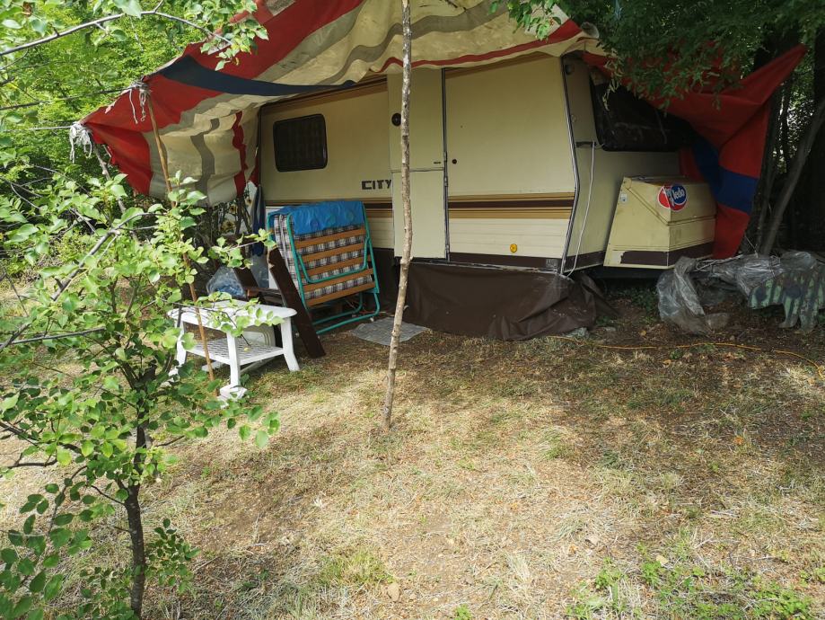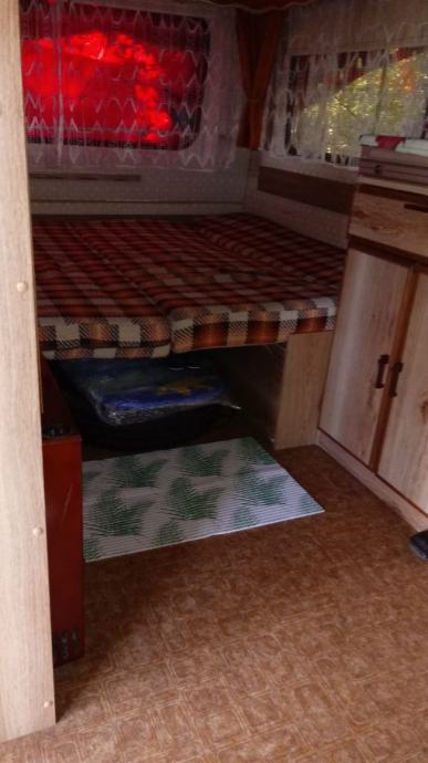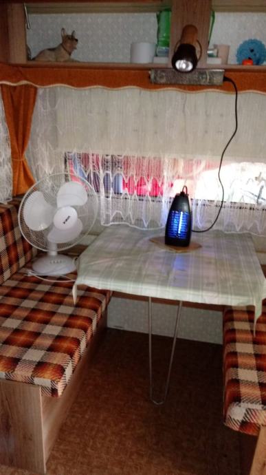 Ljeto/zima (grijanje), sa kućicom dolazi novi ogroman pred-šator (nije vidljiv na slici), bočne šator zavjese (smeđe), nikad kuhano u kućici, očuvana, u vrlo dobrom stanju (pokrivena).
