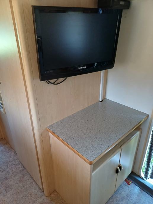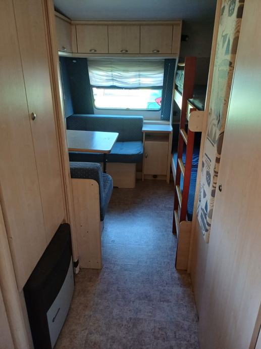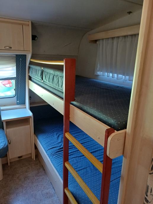Veliki bračni krevet, dva kreveta na kat, te treći krevet, postoji mogućnost ugradnje još jednog kreveta koji trenutno nije ugrađen, ali postoji i ide uz kućicu