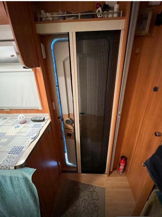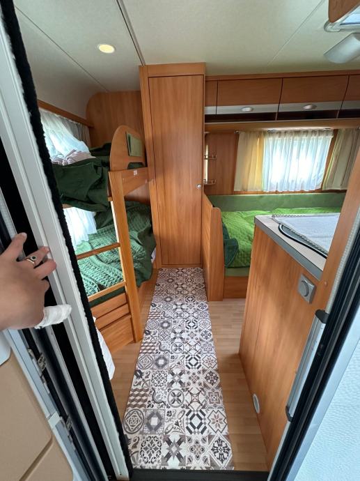 Dobro odrzana,6 kreveta,mover EnDuro,Truma senzor za plin i dim,bez infiltracija,nove gume,drzac za 3 bicikle Thule,pecnica i frizider,veranda u dobrom stanju.Talijanska registracija.Trenutno u depozitu u Istri,Porec.