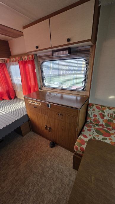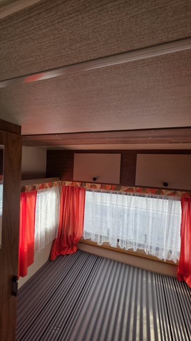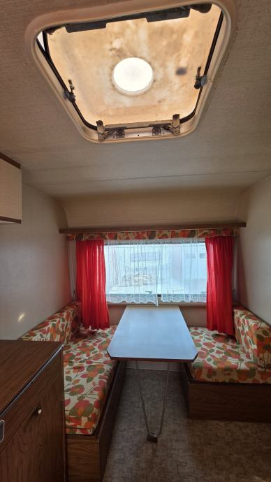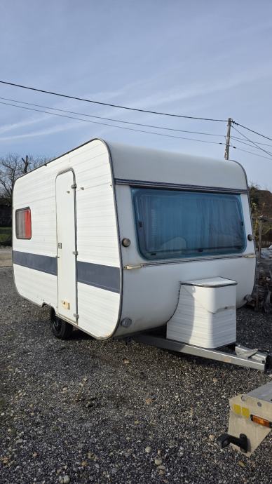 Prodajem kamp prikolicu ADRIA 390. U dobrom je stanju,inventar je dobro uščuvan,nigdje ne pušta i ne osjeti se miris vlage. U prikolici je krevet (130×200),ormari za stvari,peć za kuhanje sa sudoperom i separe koji se može presložiti u mjesto za spavanje(120×200). U voznom je stanju ali nije za registraciju. Staklo na stražnjoj strani je napuklo ,ali je sanirano i ne pušta.