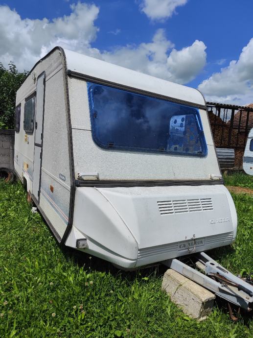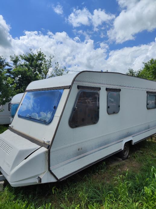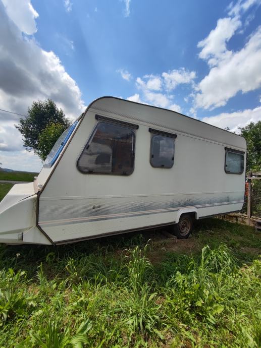 Kamp prikolica je u izvrsnom stanju suha ,čvrst pod,(kuhinja,tus kabina ,kemijski WC,dva velika kreveta ,Prikolica je prostrana,čvrsta i konpaktna.Odlicna za stacionirat bilo gdje.Snizeno do 15.10.Dostava besplatna do 40 km ,ostalo HR dogovor.Npr.Zadar 300€.Split 400€.