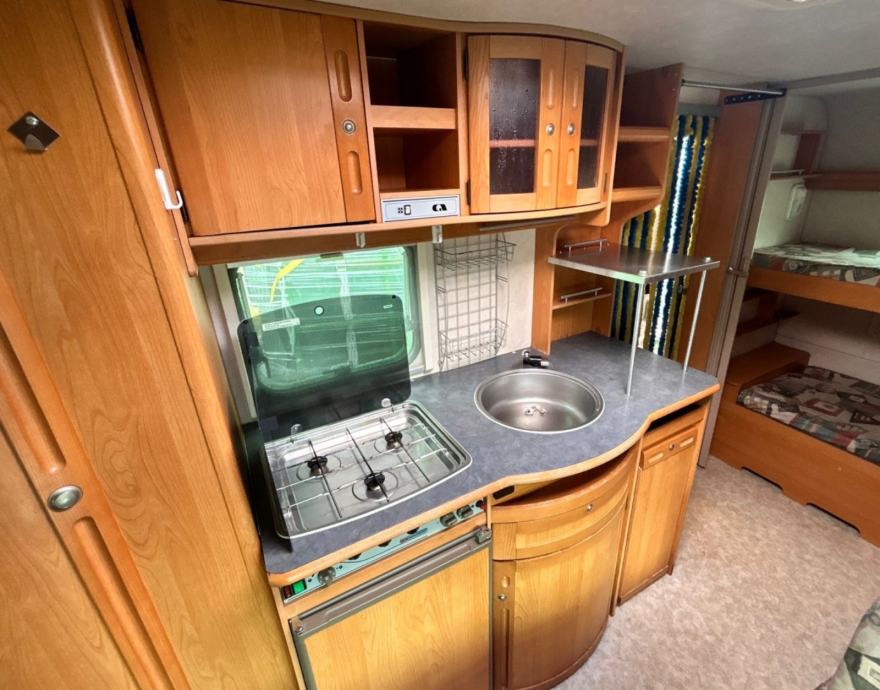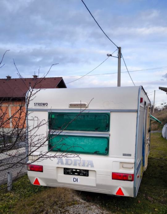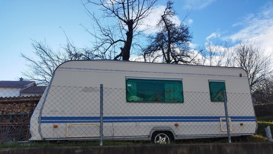 Prodajemo kamp prikolicu Adria Unica B 5207, 2000 godište, 6 m dužine, ima odvojen spavaći dio sa bračnim krevetom koji se može zatvoriti kliznim vratima. Na drugoj strani prikolice je krevet na kat koji se isto može zatvoriti harmonika vratima a osim toga sjedeća garnitura u srednjem djelu se razvlači te i tu mogu spavati dvije osobe, što znači da ukupno 6 osoba može spavati u prikolici. U kuhinji je peć na plin i frižider. U prednjem spremištu je priključak za 2 plinske boce. Grijanje smo isprobali,radi. Ima rolete i komarnike(mrežice protiv insekata koje se spuštaju kao roleta).