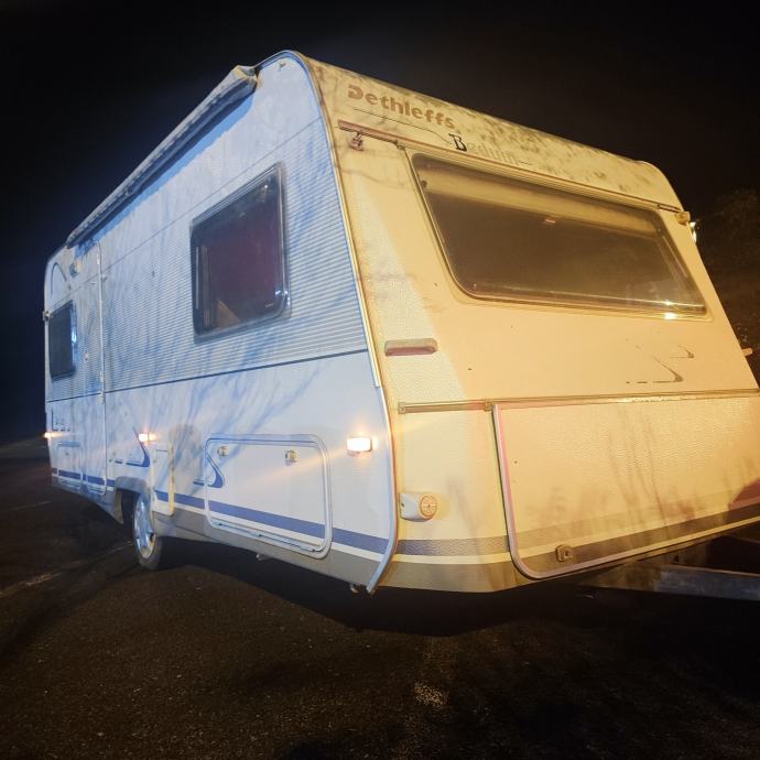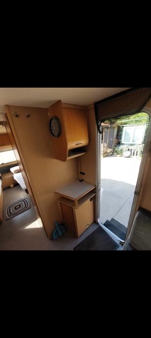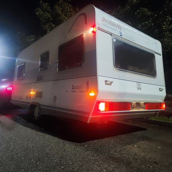 Kamp prikolica Njemačka Detlheffs sa komplet opremom u izvrsnom stanju sa krovnom Dometik klimom i tendom na razvacenje ispred prikolice.WC rotirajući (školjka na okretanje po potrebi) ,vanjsko praznjenje,tuš kabina ,umivaonik.komplet kuhinja sa friziderom plin-struja.Komarnici i zastita od sunca na svim prozorima.Prikolica je unutra malo korištena ,uredna i prostrana sa lijepim rasporedom i odvojenim krevetima na jednoj strani.a na drugoj strani veliki krevet .Moze spavati 4-5 osoba Uskoro HR reg.po potrebi kupca.Papiri uredni u dolasku iz Njemačke zbog odjave vani.Prikolica odlicna za putovati i za stacionirat. Vise slike sutra.Sniženo 20% do 1.12.Dostava besplatna do 40 km ,za dalje HR dogovor-povoljno.