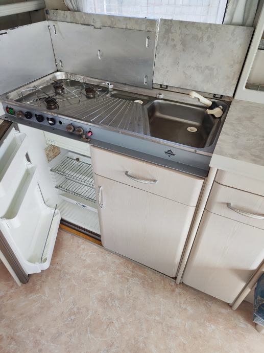 Ima komplet opremu sa predšatorom.Tepisi za pod po mjeri. Svjetliji namjestaj i odličan raspored inventara.Vrijedno kupnje.Može se vuci sa B -kat.sa osobnim autom.Odlicna za putovanje,kamp ili za postaviti na zemljiste ( parcelu).Po potrebi i dostava.Vrijedno kupnje
