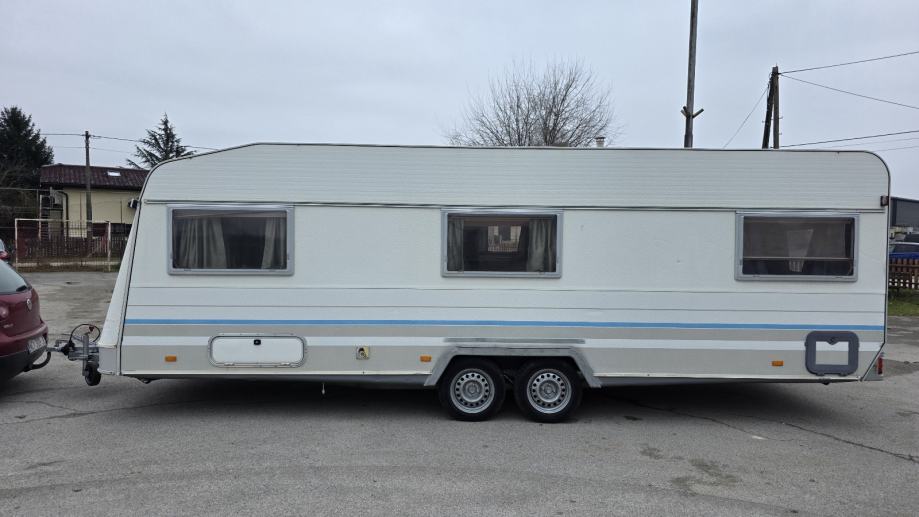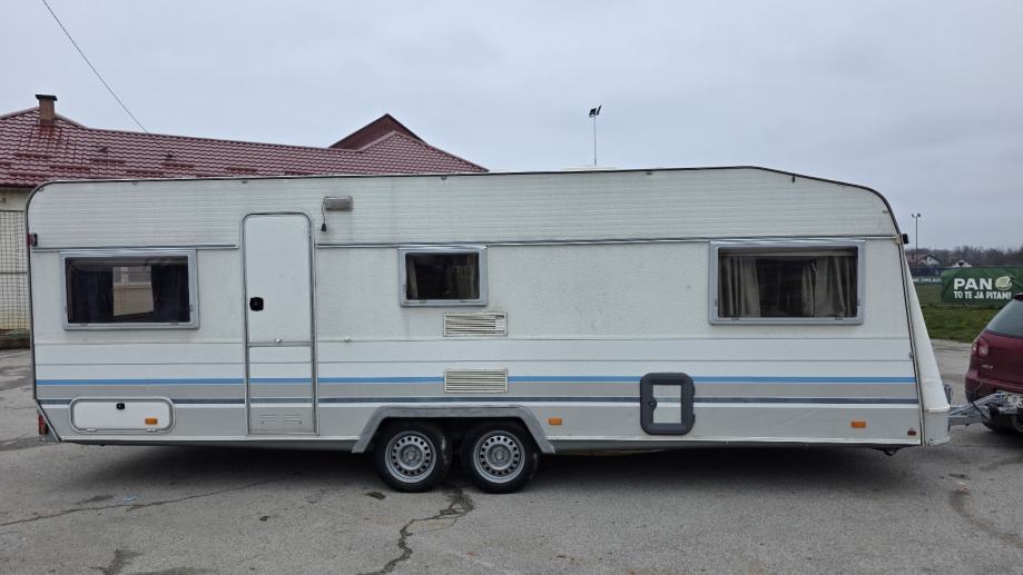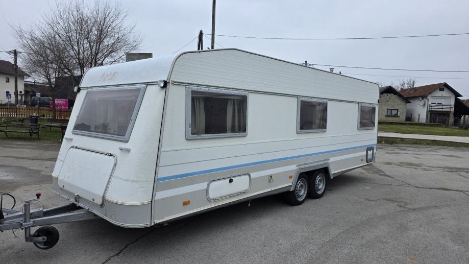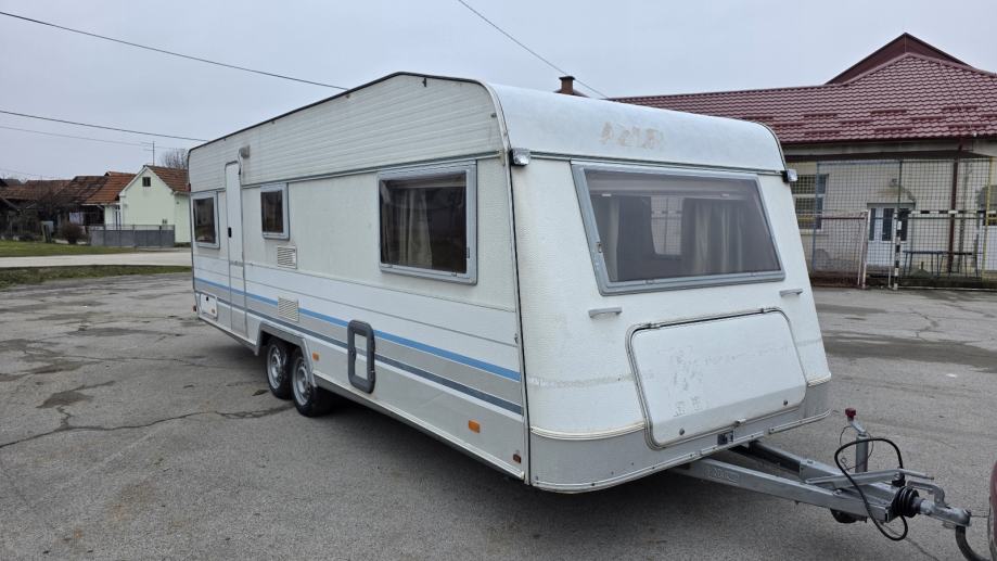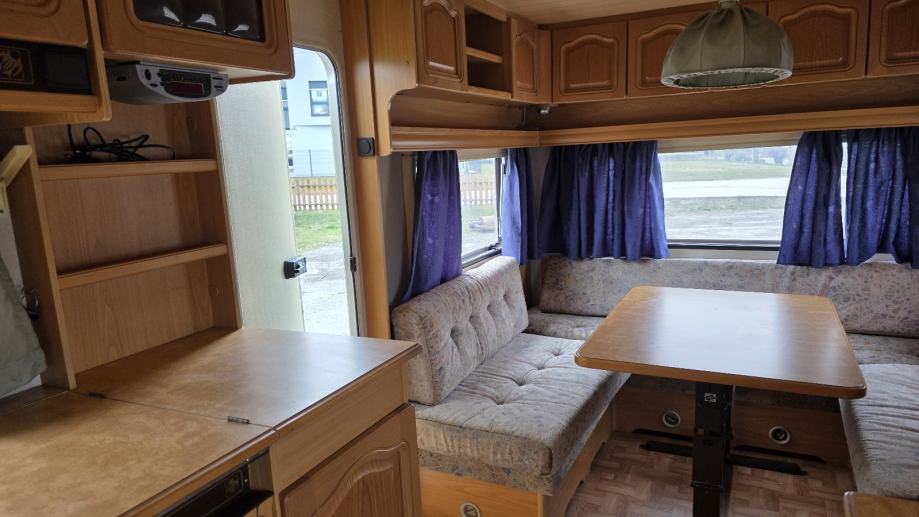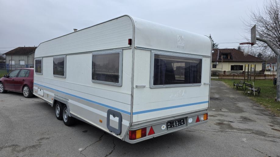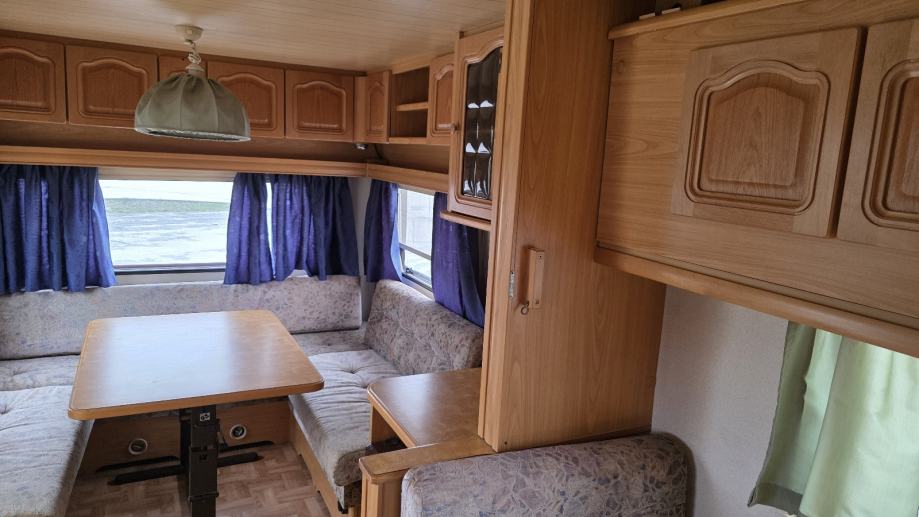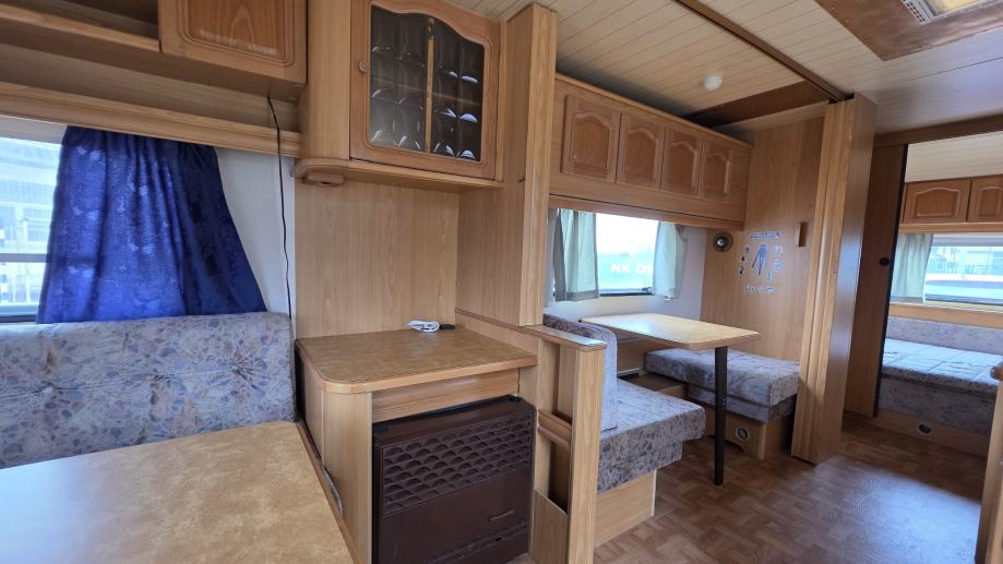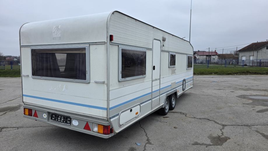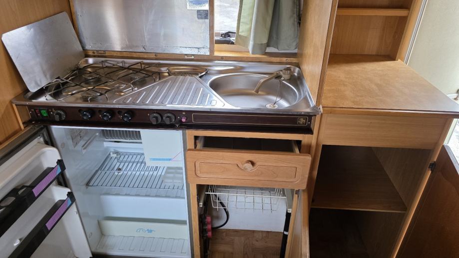 Prodajem kamp prikolicu KNAUS AZUR 700. U super je stanju,nema mirisa vlage i nigdje ne pušta. U kampici se nalazi: veliki separe,stolič za tv sa antenom,mali separe i iznad njega krevet,nekoliko večih i manjh ormara za stvari,veliki bračni krevet,kupaonski prostor u kojem je kemijski wc i tuš kabina,velika kuhinja sa sudoperom,peć za kuhanje,frižider i nekoliko ormara za posuđe,peć za grijanje.U prikolici može spavati 6/7 osoba.