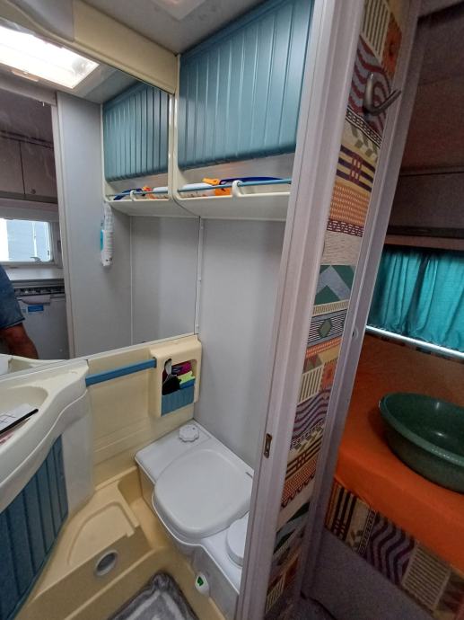 - kutni stol za blagovaonicu trenutno nije korišten, jer smo ga preuredili u krevet s podnicom, koja se može podići za pristup prostorima za odlaganje kutne klupe