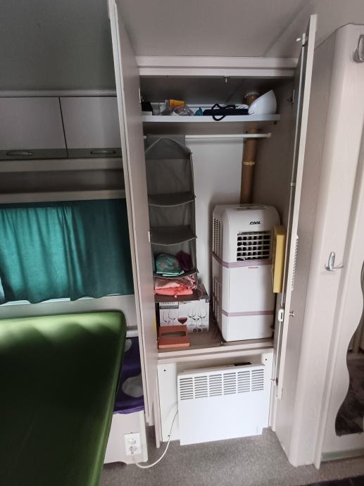 - prijenosna klima uređaj s otvorima za topli zrak ugrađen je u ormarić