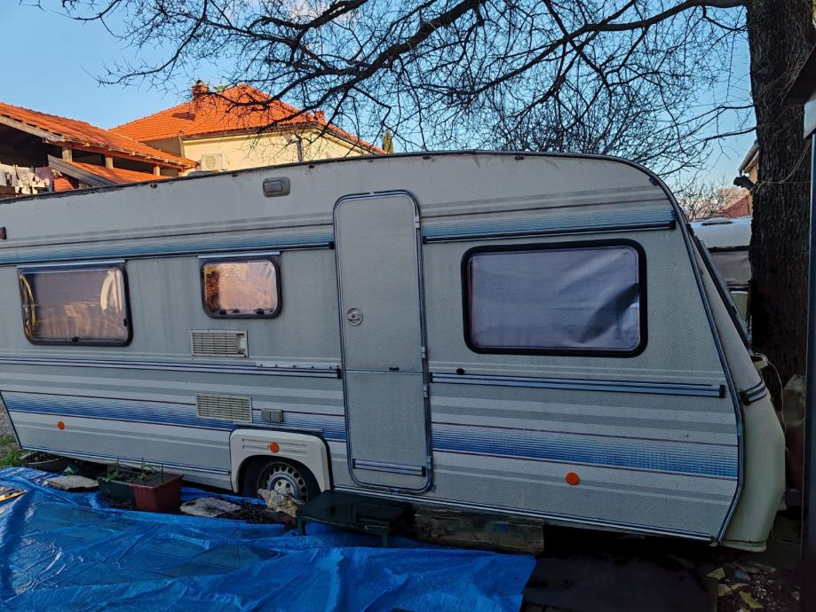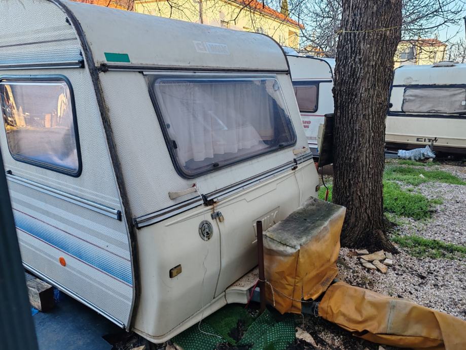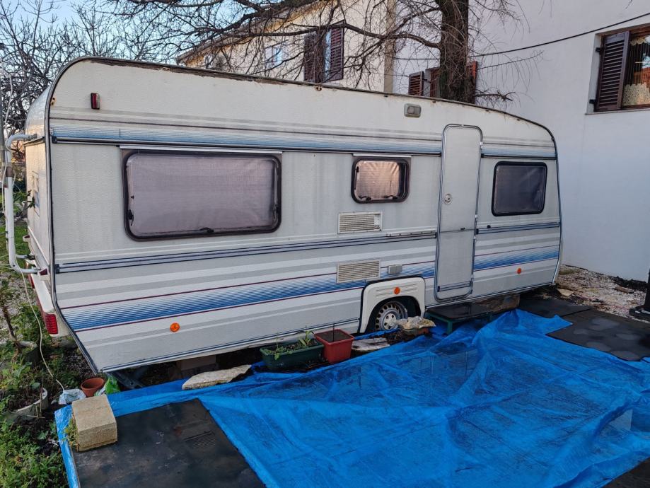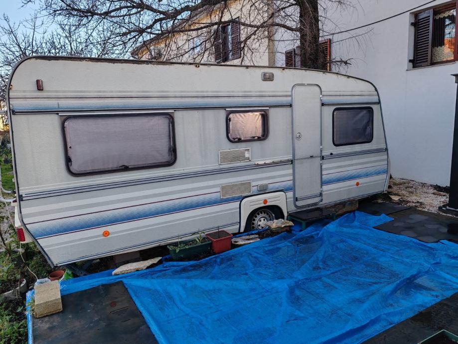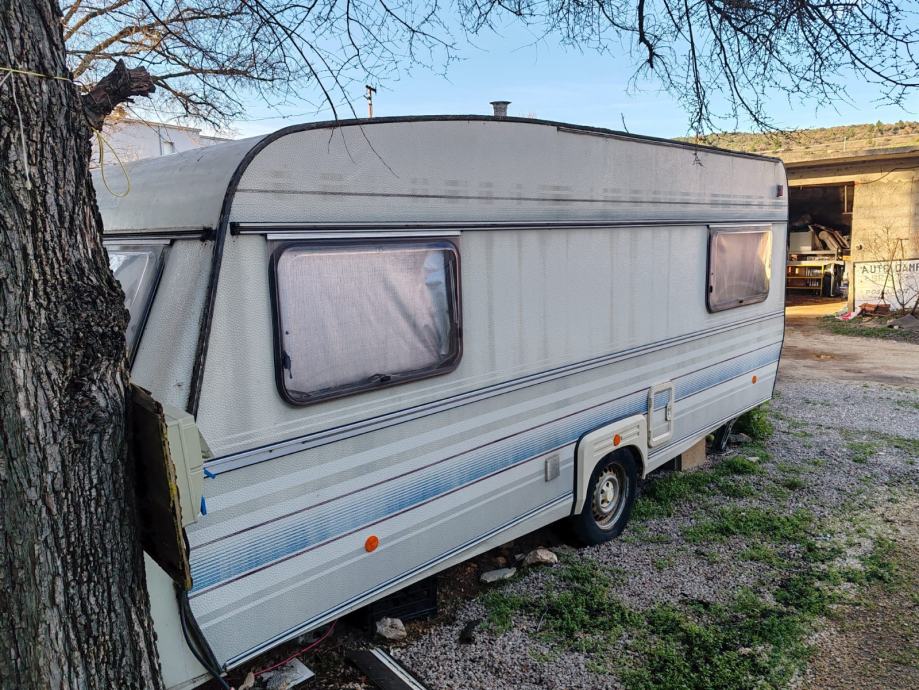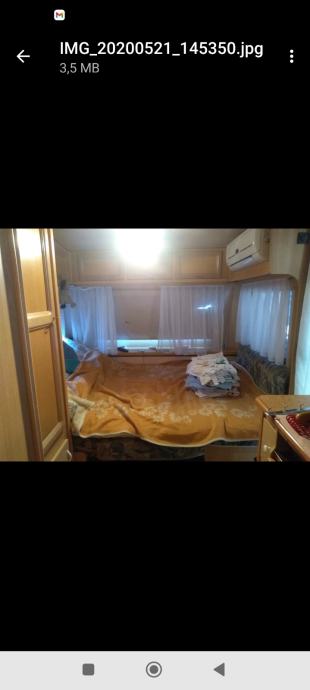 Kamp kućica sa kompletnom opremom. Dugačka 5,50m široka 2,20 m. Ima dva kreveta na kat i jedan veliki krevet sa novim madracem po mjeri. U jako dobrom stanju cijela unutrašnjost. Ima ugrađen kućni klima uređaj sa vanjskom jedinicom na rudu. Svi prozori imaju komarnike. Nije registrirana ali je u voznom stanju. Uz nju ide predšator sa drvenim podom i velika dva tepiha za njega,te od platna sašiven plafon. Uz kampicu ide i posebno od lima kuhinja 2,20 m dugačka i 1,50m široka, potpuno opremljena (frižider sa ledenicom, peć, suđe i sav drugi kuhinjski pribor, radni stol), ormar za posuđe stol za ručavanje i stolice. Nalazi se u privatnom kampu u Posedarju. Moguće ju je vidjeti. Cijena 6000,00 eur moguć dogovor. Zvati na 0915628365