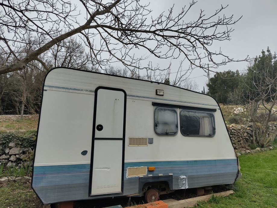 Kamp prikolica bez papira za pokloniti. Gume su jos tu, ali posto nema papira, mora se pokupiti sa kamionom.