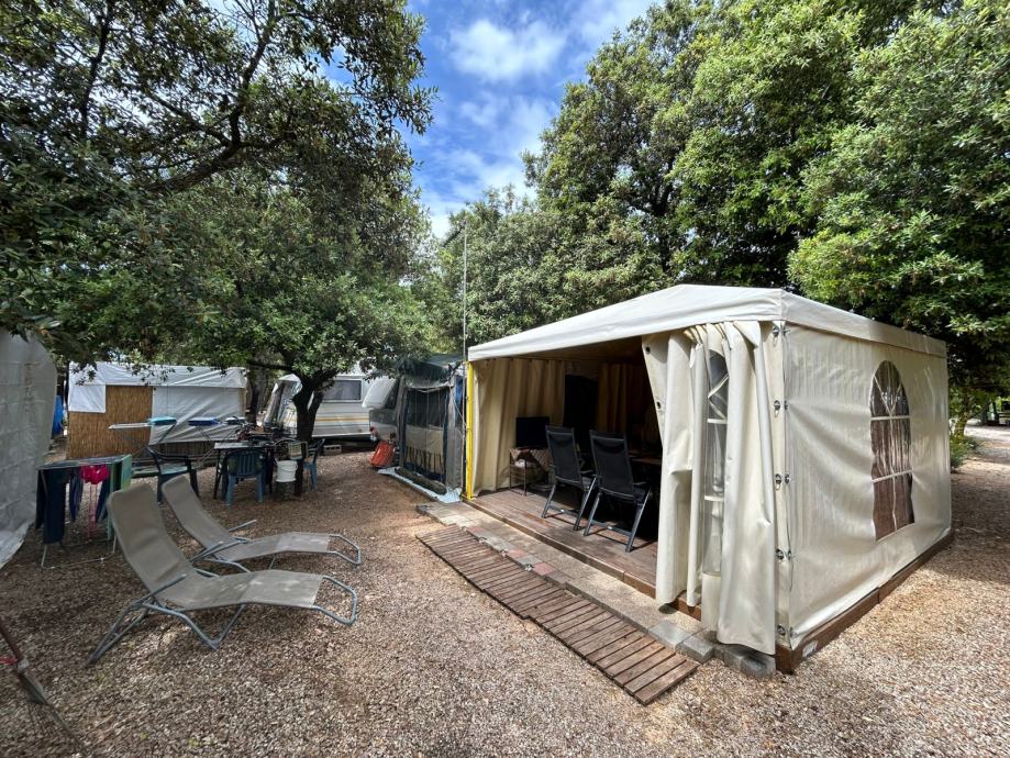 Kamp-prikolica je trenutno postavljena na parceli u kampu "Park Soline" u Biogradu na Moru, broj parcele 994. Naknada za parcelu nije uračunata u cijenu, te ovisi o datumu kupnje/preuzimanja, prema dogovoru.