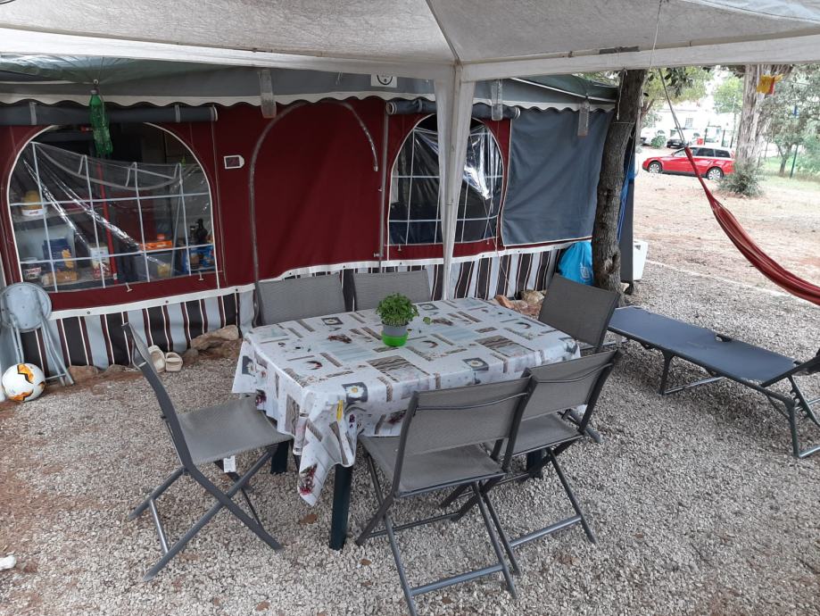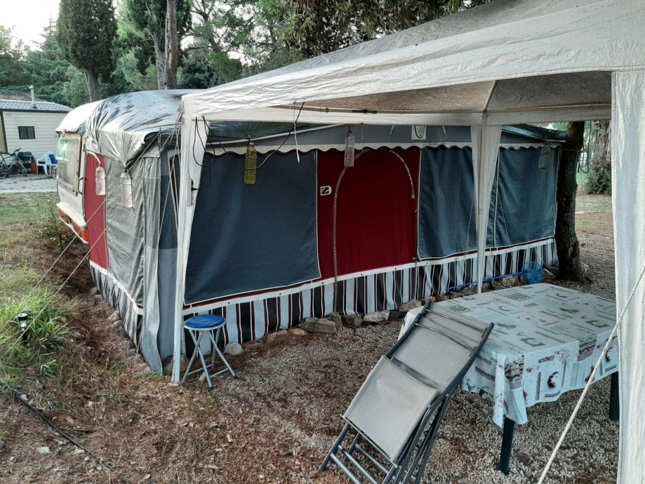 Prodaje se kampica marke Tabbert, 1998. godina u izvrsnom stanju, s predšatorom i sa svom popratnom opremom, kao što se može vidjeti sa slika. Nikad kuhano u kapmici nije. Papiri uredni.Registrirana,rezervirano mjesto u kampu Brijuni Puntižela
