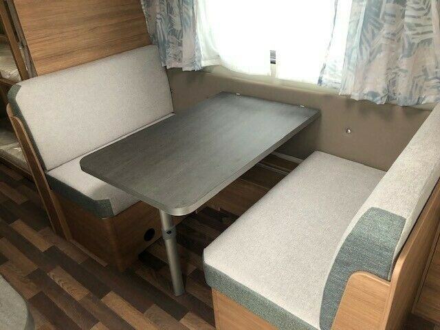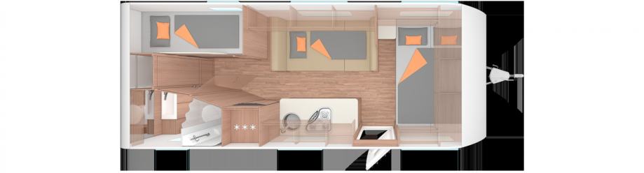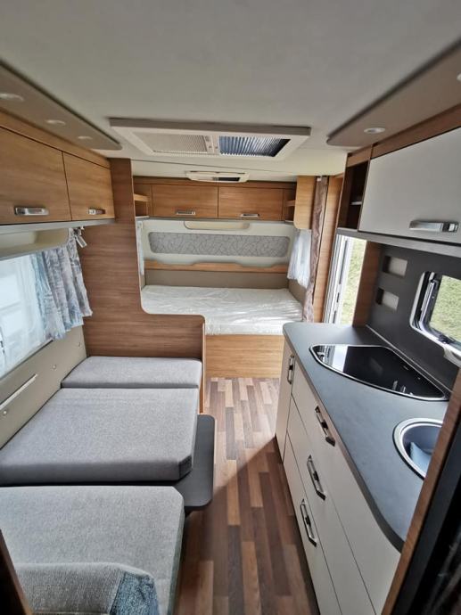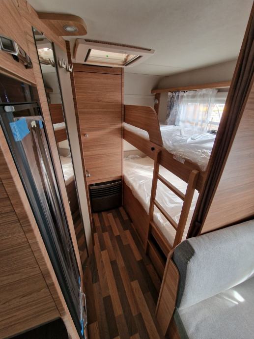 LED ugrađena mjesta iznad prostora za sjedenje, LED ambijentalno osvjetljenje u bočnim i kuhinjskim ormarima , presvlaka od tkanine za prednji zid, držač lampe prekriven tkaninom iznad