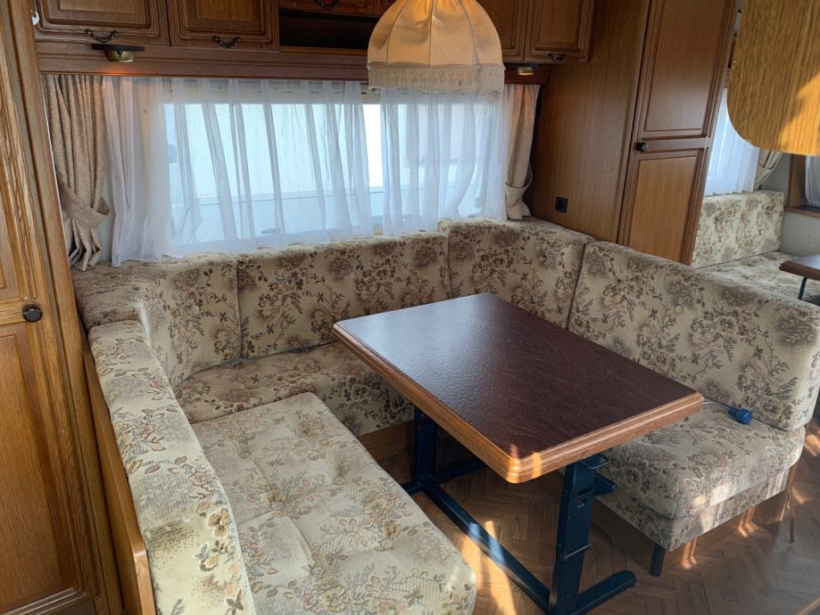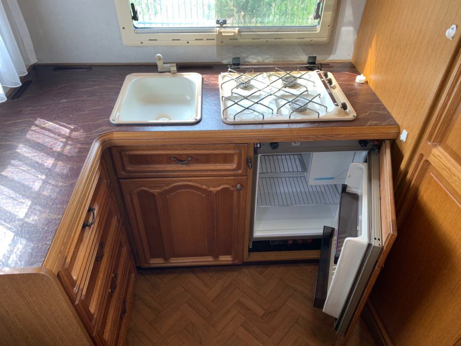 za 4 osobe; 2x separe garnitura sa stolovima koje se spustaju za krevet 140x200cm. Kuhinja; plin