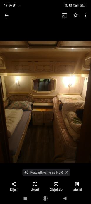 Ogromna kamp kućica dvosovinka sami naziv velika luksuzna barunica tako je i rađena u tom stilu uvezena prošle godine uredno registrirana godinu dana sve orginal vidi se na slikama tuš kabina spavaća kuhinja kuhalo na plin vebasto grijanje na diesel Komarnici zavjese Tv antena vanjska itd da ne nabrajam full sve treba se vidjet uživo da vidite što je kamp kućica