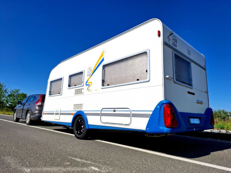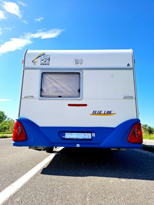 Njemačka kamp prikolica marke Knaus Blue Line 5,5m+ruda,Hr registracija do 5mj.2026god, bogato opremljena: nova Dometic stropna klima, Truma protočni bojler tople vode, tank za vodu vanjsko punjenje, Tuš sa tuš kabinom, zasebna kupaona, Wc Thetford rotirajuci vanjsko pražnjenje, zasebne pumpe(sve rade), Trumatic plinsko grijanje 12V ventiliranje po cijeloj prikolici, na svim prozorima sjenila I komarnici, panoramski prozor, kuhinja ne koristena, hladnjak Electrolux plin/12v/220v, C-gume, Alko ruda protiv prevrtanja, Originalni odličan predšator itd... Prikolica je doslovno u odličnom stanju te spremna za upotrebu. Moguć dovoz.
